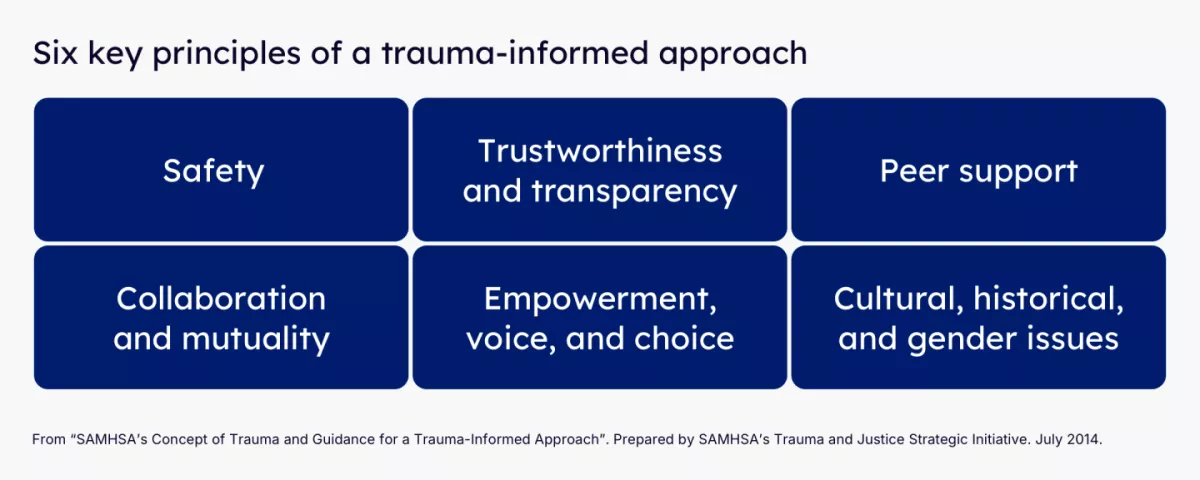 Figure 4. Six key principles of a trauma-informed approach, published by the Substance Abuse and Mental Health Services Administration (SAMHSA).