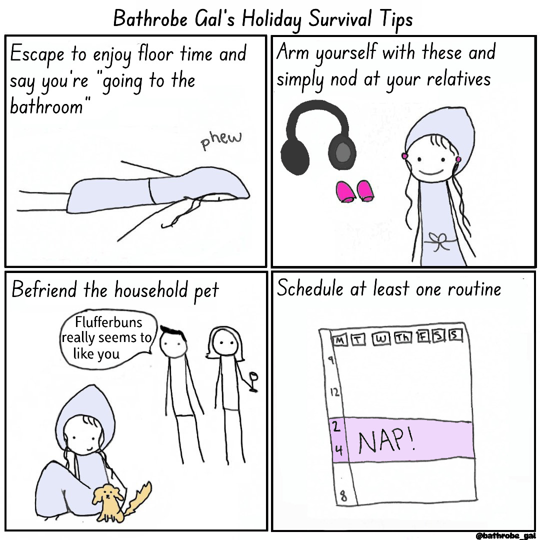Bathrobe Gal: Holiday Survival Tips ⢠Sarah Jane Cody